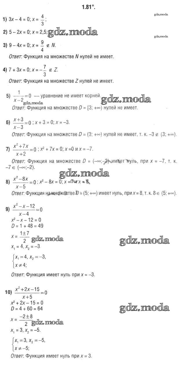 ОТВЕТ на задание № 1.81 Учебник по Алгебре 9 класс Кузнецова