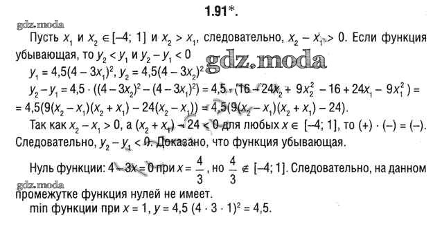 ОТВЕТ на задание № 1.91 Учебник по Алгебре 9 класс Кузнецова
