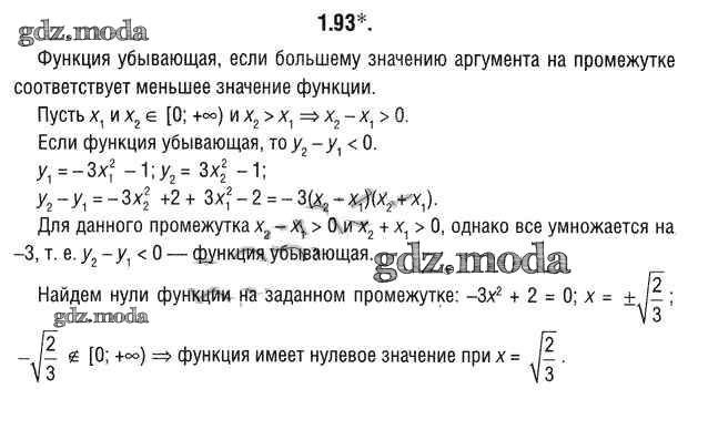ОТВЕТ на задание № 1.93 Учебник по Алгебре 9 класс Кузнецова