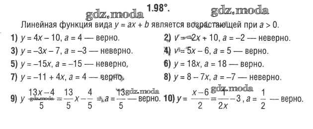 ОТВЕТ на задание № 1.98 Учебник по Алгебре 9 класс Кузнецова