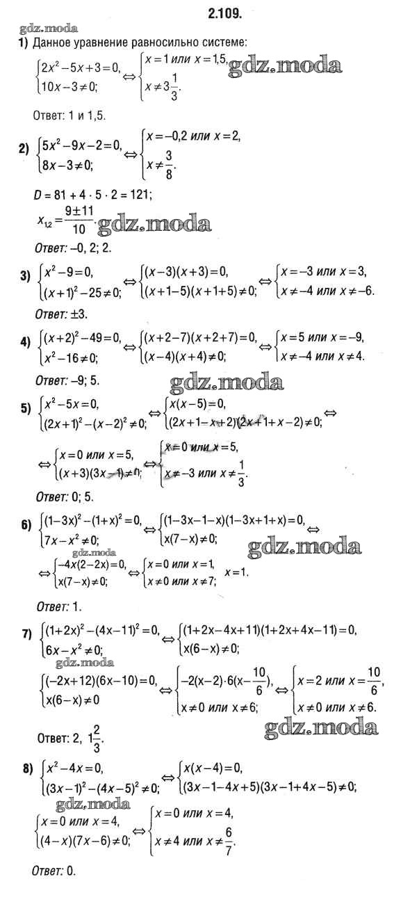 ОТВЕТ на задание № 2.109 Учебник по Алгебре 9 класс Кузнецова