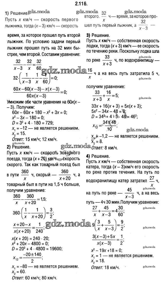 ОТВЕТ на задание № 2.116 Учебник по Алгебре 9 класс Кузнецова