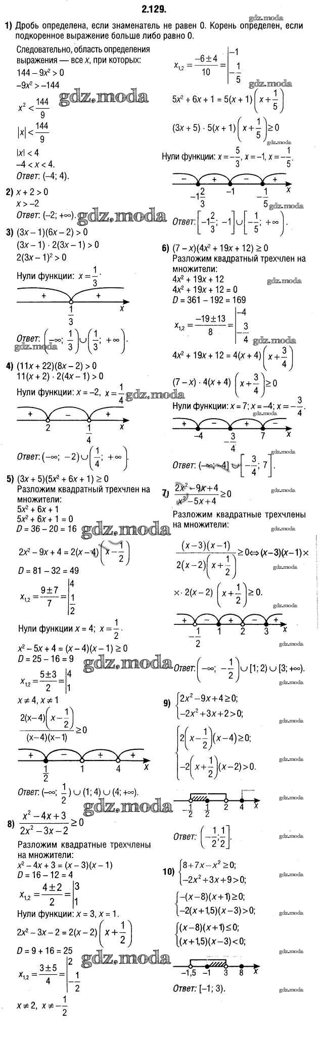 ОТВЕТ на задание № 2.129 Учебник по Алгебре 9 класс Кузнецова