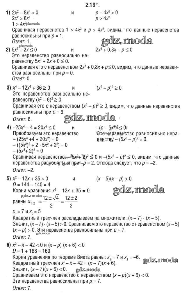 ОТВЕТ на задание № 2.13 Учебник по Алгебре 9 класс Кузнецова