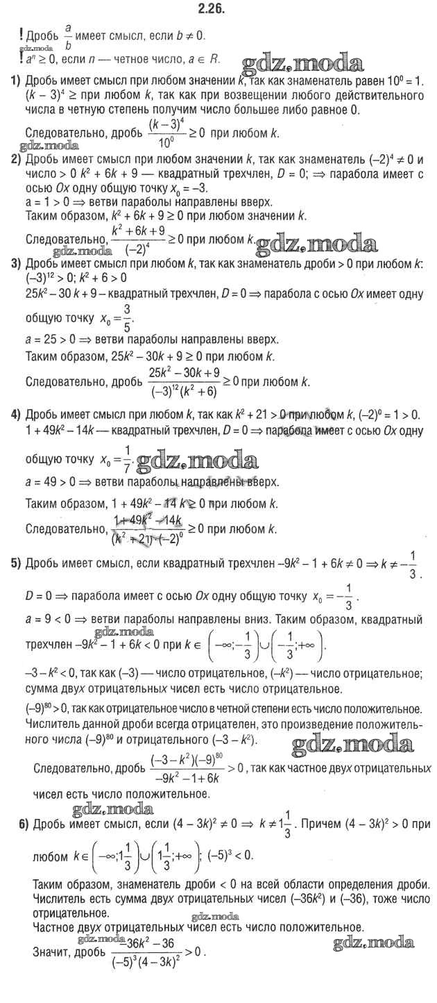 ОТВЕТ на задание № 2.26 Учебник по Алгебре 9 класс Кузнецова