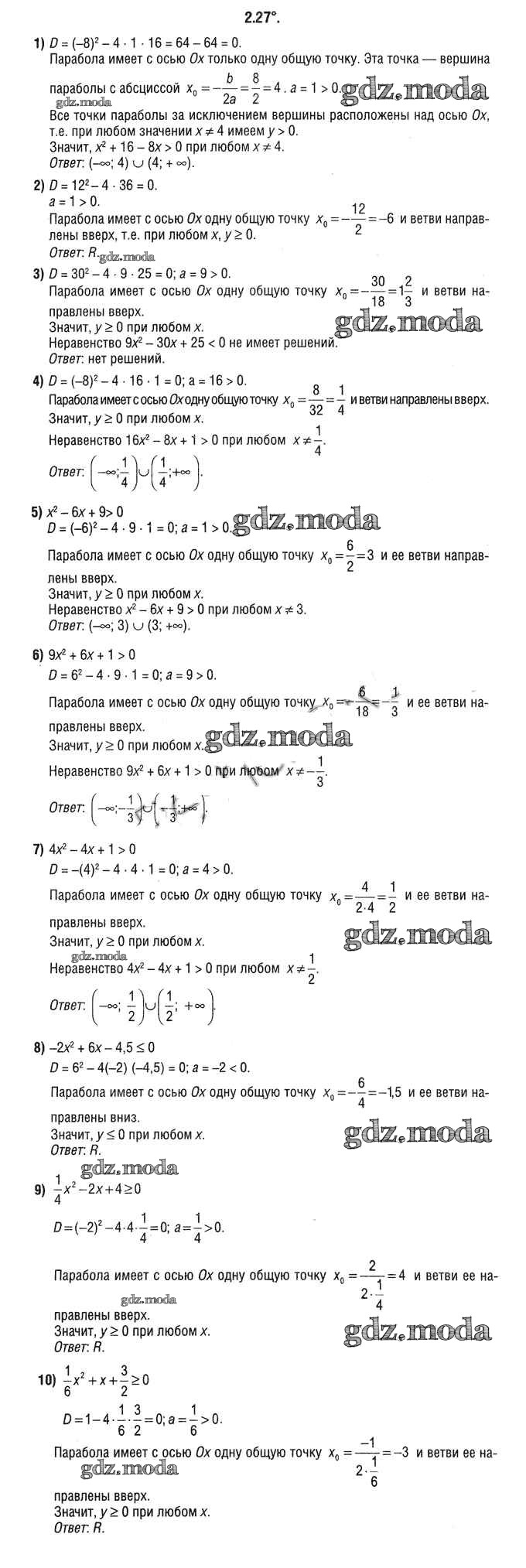 ОТВЕТ на задание № 2.27 Учебник по Алгебре 9 класс Кузнецова