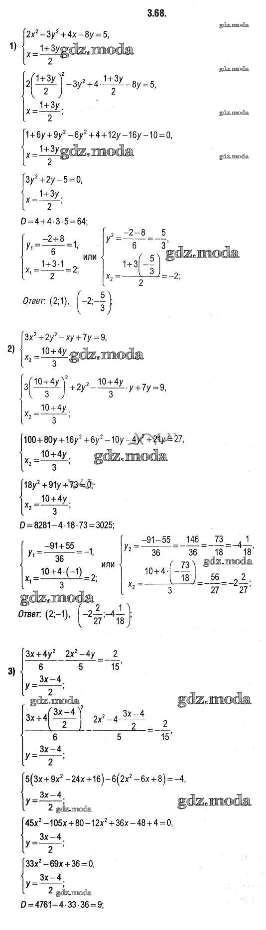 ОТВЕТ на задание № 3.68 Учебник по Алгебре 9 класс Кузнецова