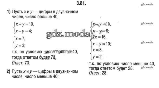 ОТВЕТ на задание № 3.81 Учебник по Алгебре 9 класс Кузнецова