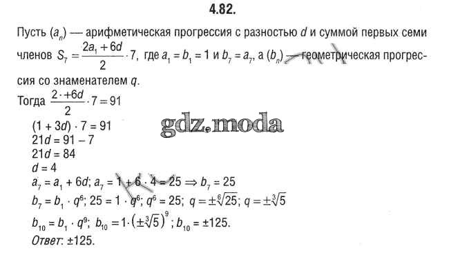 ОТВЕТ на задание № 4.82 Учебник по Алгебре 9 класс Кузнецова