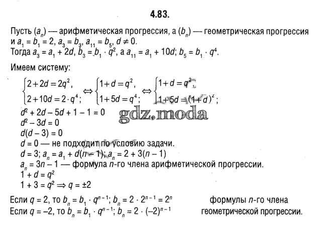 ОТВЕТ на задание № 4.83 Учебник по Алгебре 9 класс Кузнецова