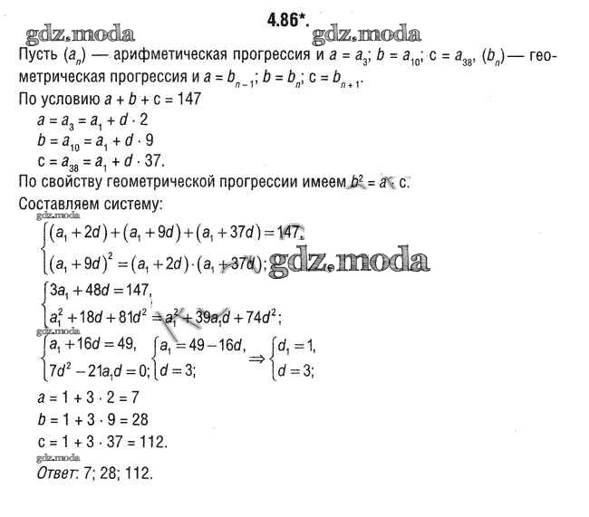 ОТВЕТ на задание № 4.86 Учебник по Алгебре 9 класс Кузнецова