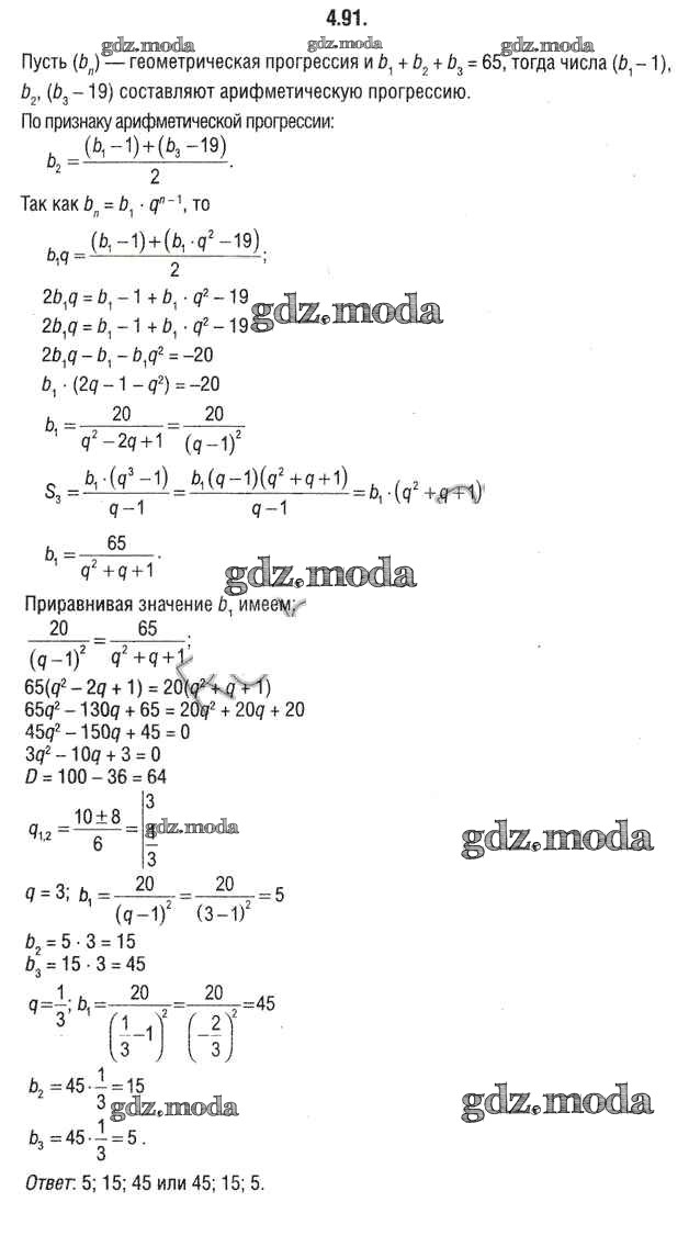 ОТВЕТ на задание № 4.91 Учебник по Алгебре 9 класс Кузнецова