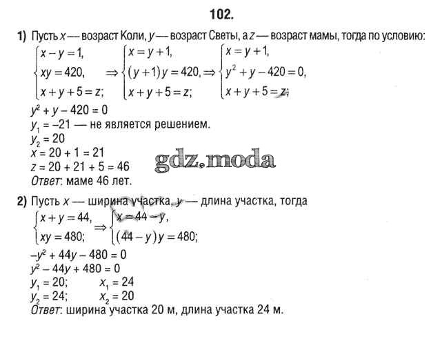 ОТВЕТ на задание № 102 Учебник по Алгебре 9 класс Кузнецова