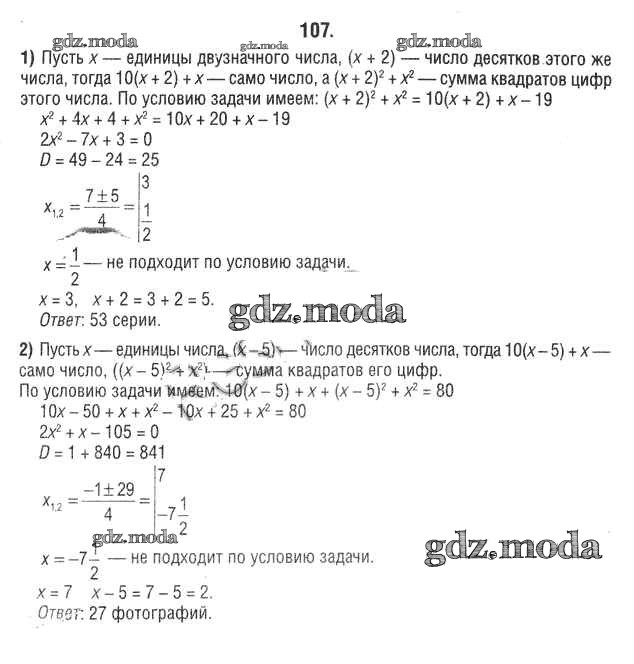 ОТВЕТ на задание № 107 Учебник по Алгебре 9 класс Кузнецова