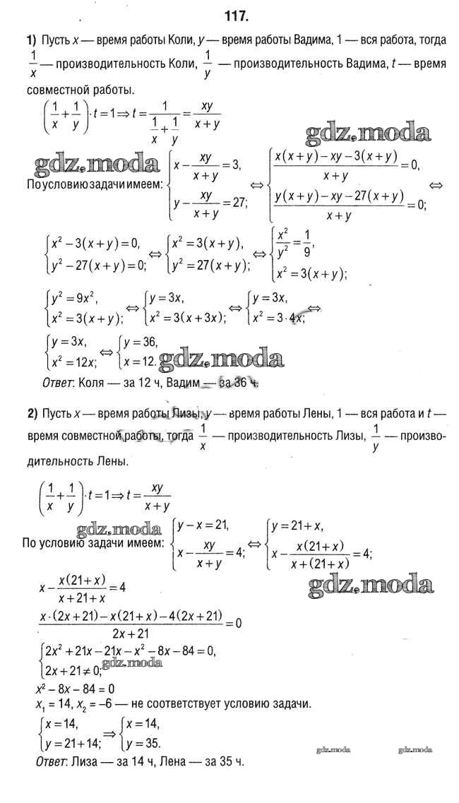 ГДЗ решение к заданию № 117 Алгебра 9 класс Кузнецова Е.П. Народная асвета 2015 бесплатно на гдз.мода!