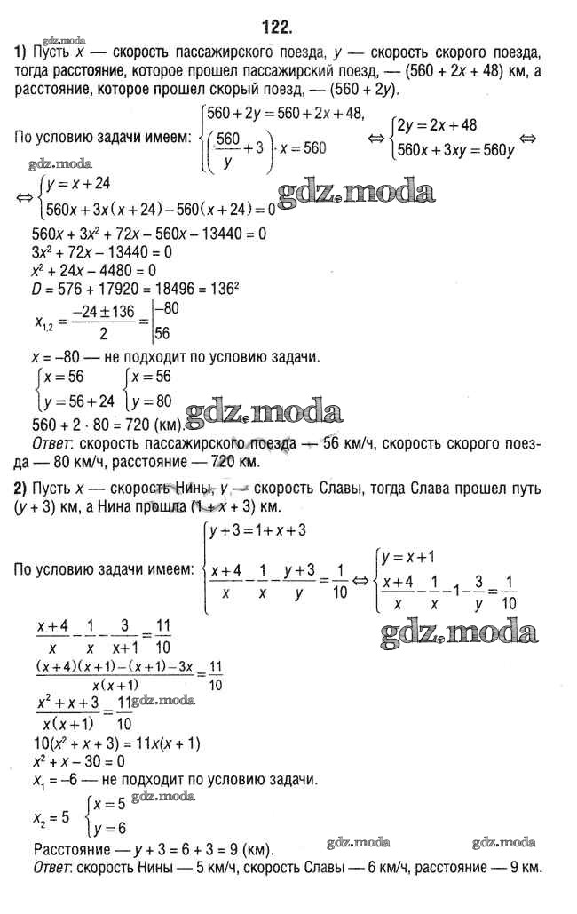ОТВЕТ на задание № 122 Учебник по Алгебре 9 класс Кузнецова