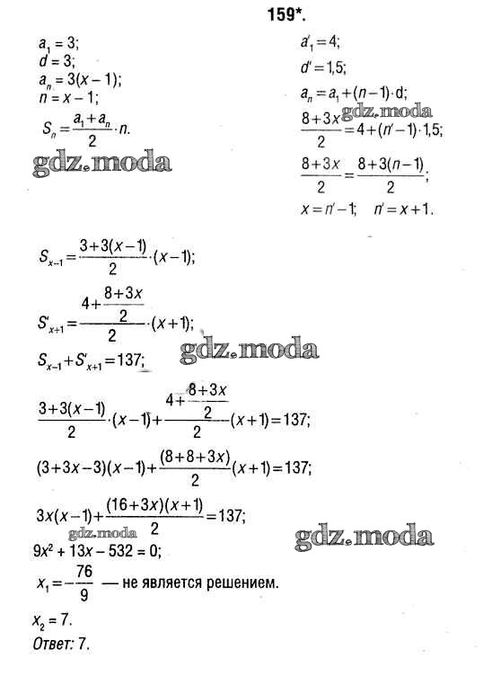 ОТВЕТ на задание № 159 Учебник по Алгебре 9 класс Кузнецова
