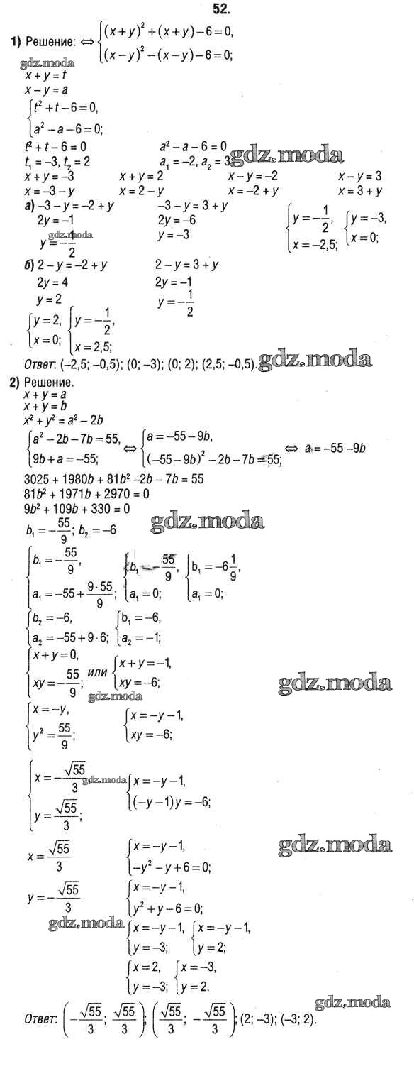 ОТВЕТ на задание № 52 Учебник по Алгебре 9 класс Кузнецова