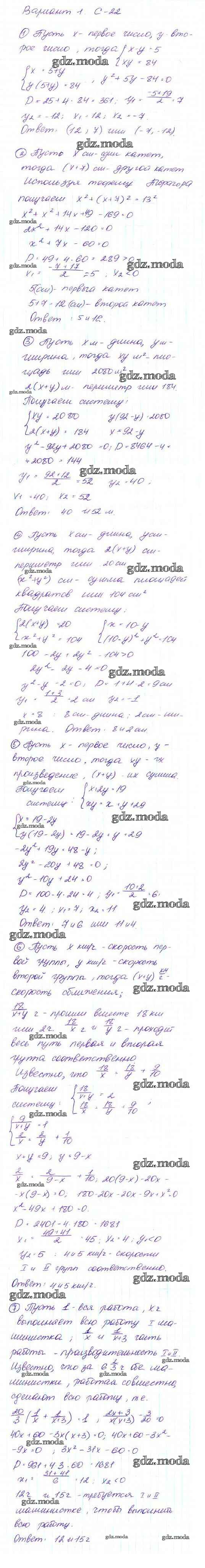 ГДЗ решение к заданию № C-22 Алгебра 9 класс Дидактические материалы Макарычев Ю.Н. Просвещение 2015 ФГОС бесплатно на гдз.мода!