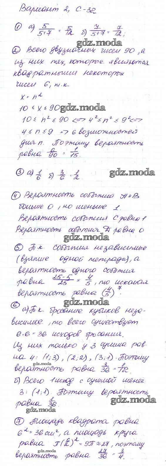 ГДЗ решение к заданию № С-32 Алгебра 9 класс Дидактические материалы Макарычев Ю.Н. Просвещение 2015 ФГОС бесплатно на гдз.мода!