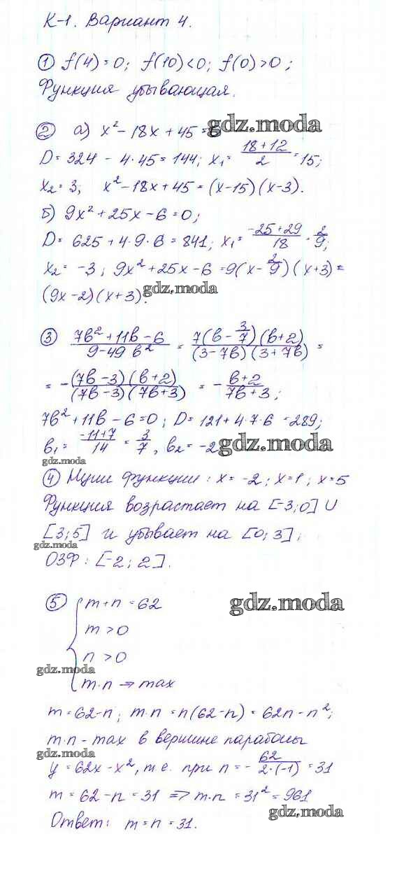 ГДЗ решение к заданию № Вариант 4 Алгебра 9 класс Дидактические материалы Макарычев Ю.Н. Просвещение 2015 ФГОС бесплатно на гдз.мода!
