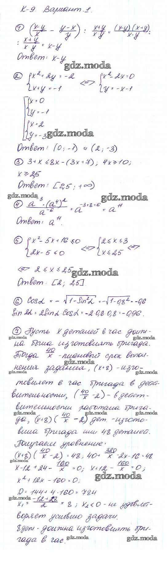 ГДЗ решение к заданию № Вариант 1 Алгебра 9 класс Дидактические материалы Макарычев Ю.Н. Просвещение 2015 ФГОС бесплатно на гдз.мода!