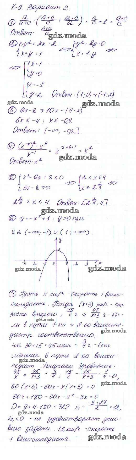 ГДЗ решение к заданию № Вариант 2 Алгебра 9 класс Дидактические материалы Макарычев Ю.Н. Просвещение 2015 ФГОС бесплатно на гдз.мода!