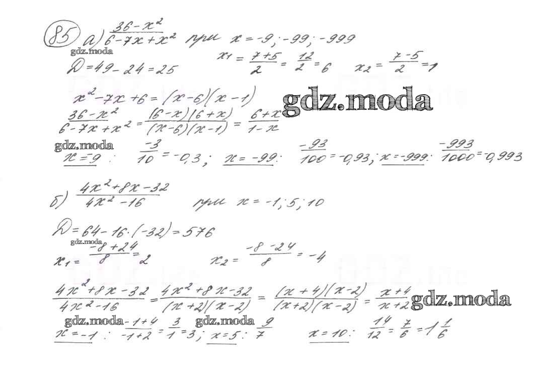 ГДЗ решение к заданию № 85 Алгебра 9 класс Макарычев Ю.Н. Просвещение 2014 ФГОС бесплатно на гдз.мода!