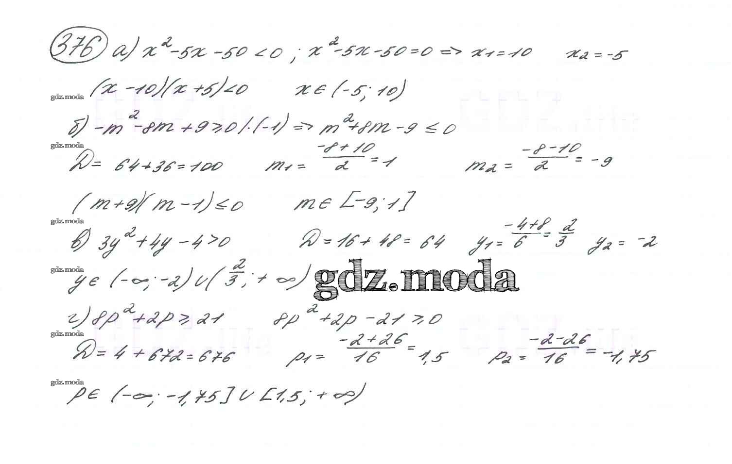 ОТВЕТ на задание № 376 Учебник по Алгебре 9 класс Макарычев