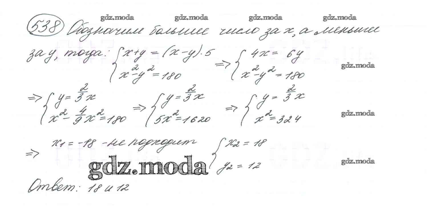 ГДЗ решение к заданию № 538 Алгебра 9 класс Макарычев Ю.Н. Просвещение 2014 ФГОС бесплатно на гдз.мода!