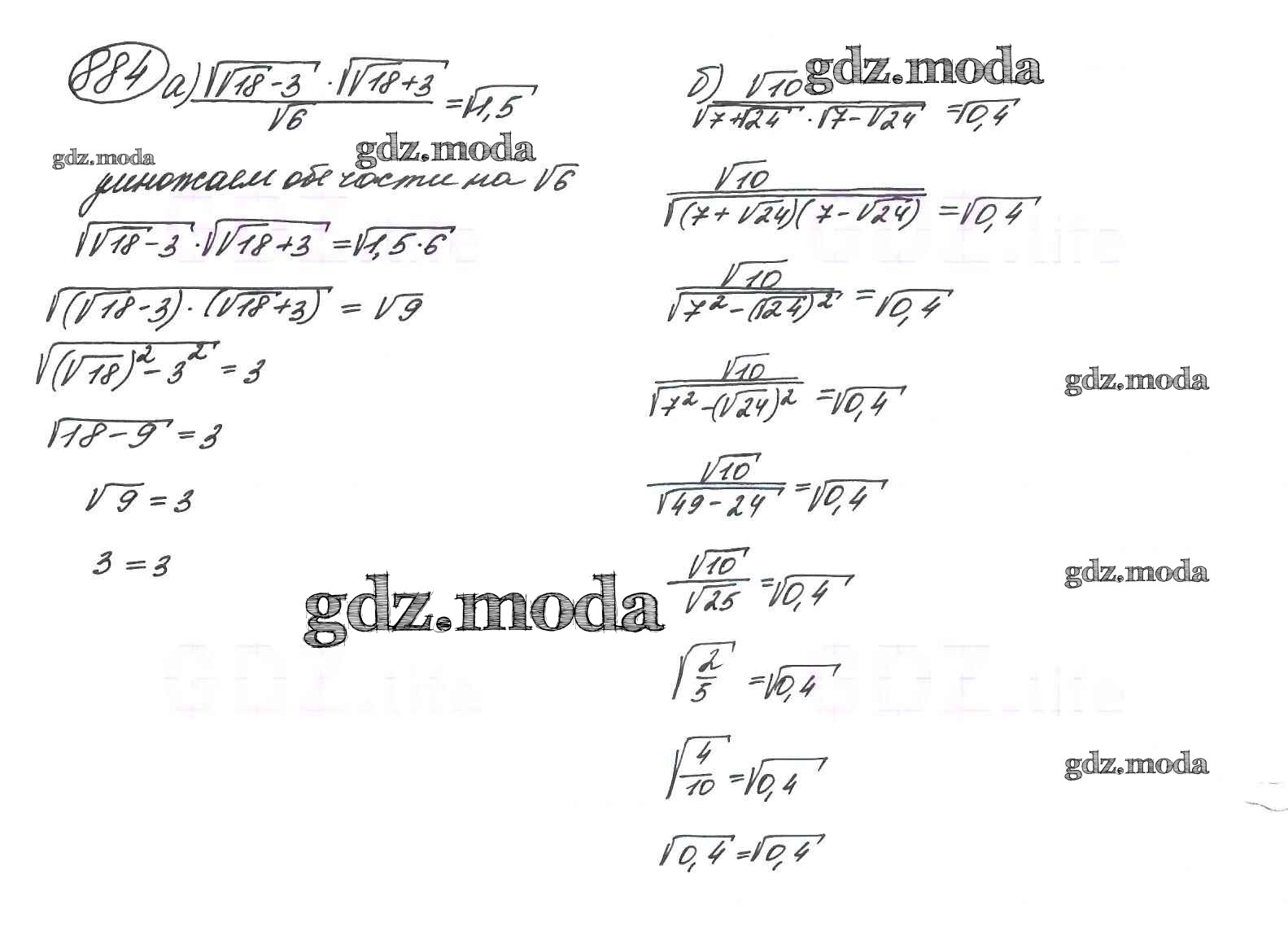 ОТВЕТ на задание № 884 Учебник по Алгебре 9 класс Макарычев
