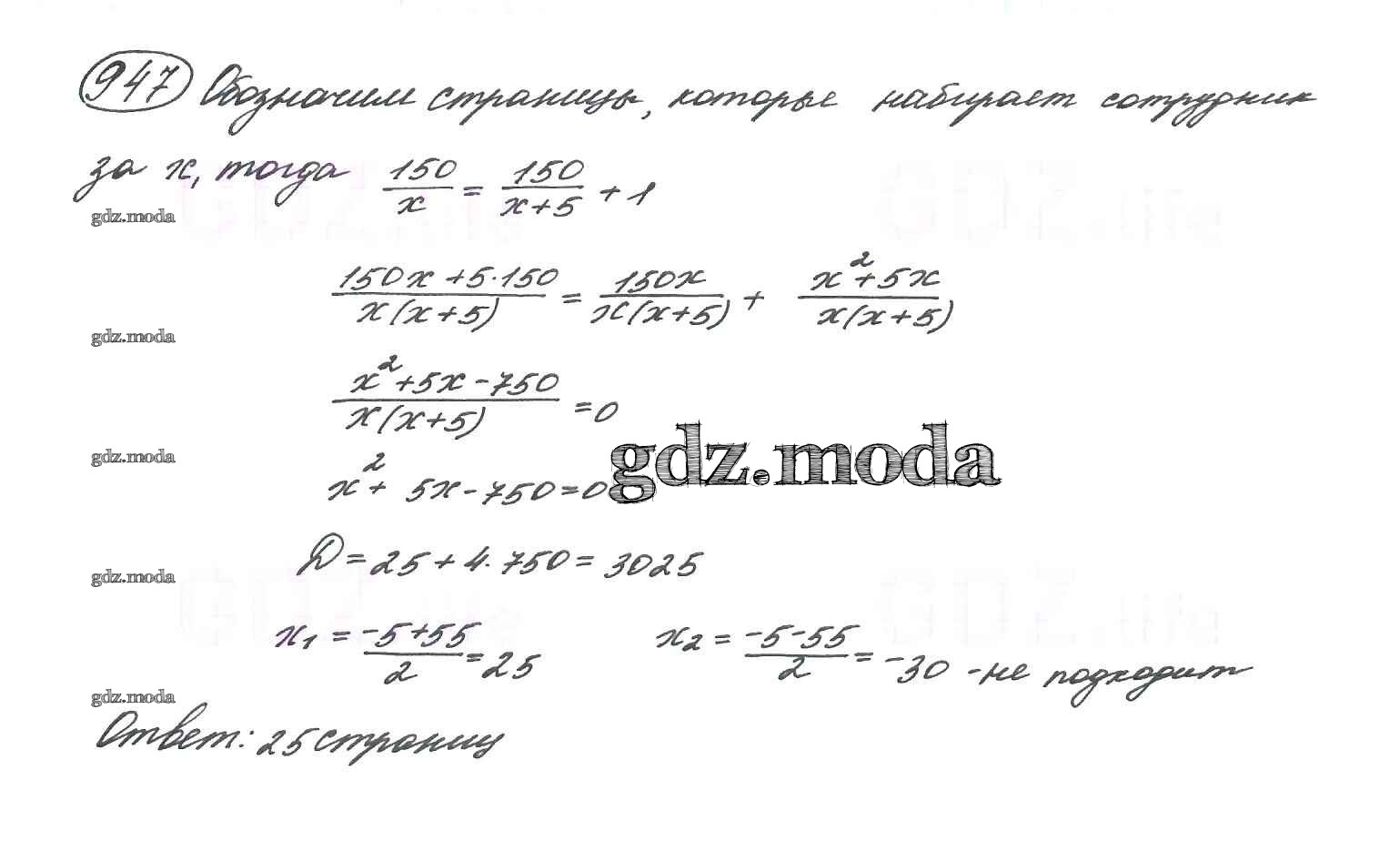 ОТВЕТ на задание № 947 Учебник по Алгебре 9 класс Макарычев