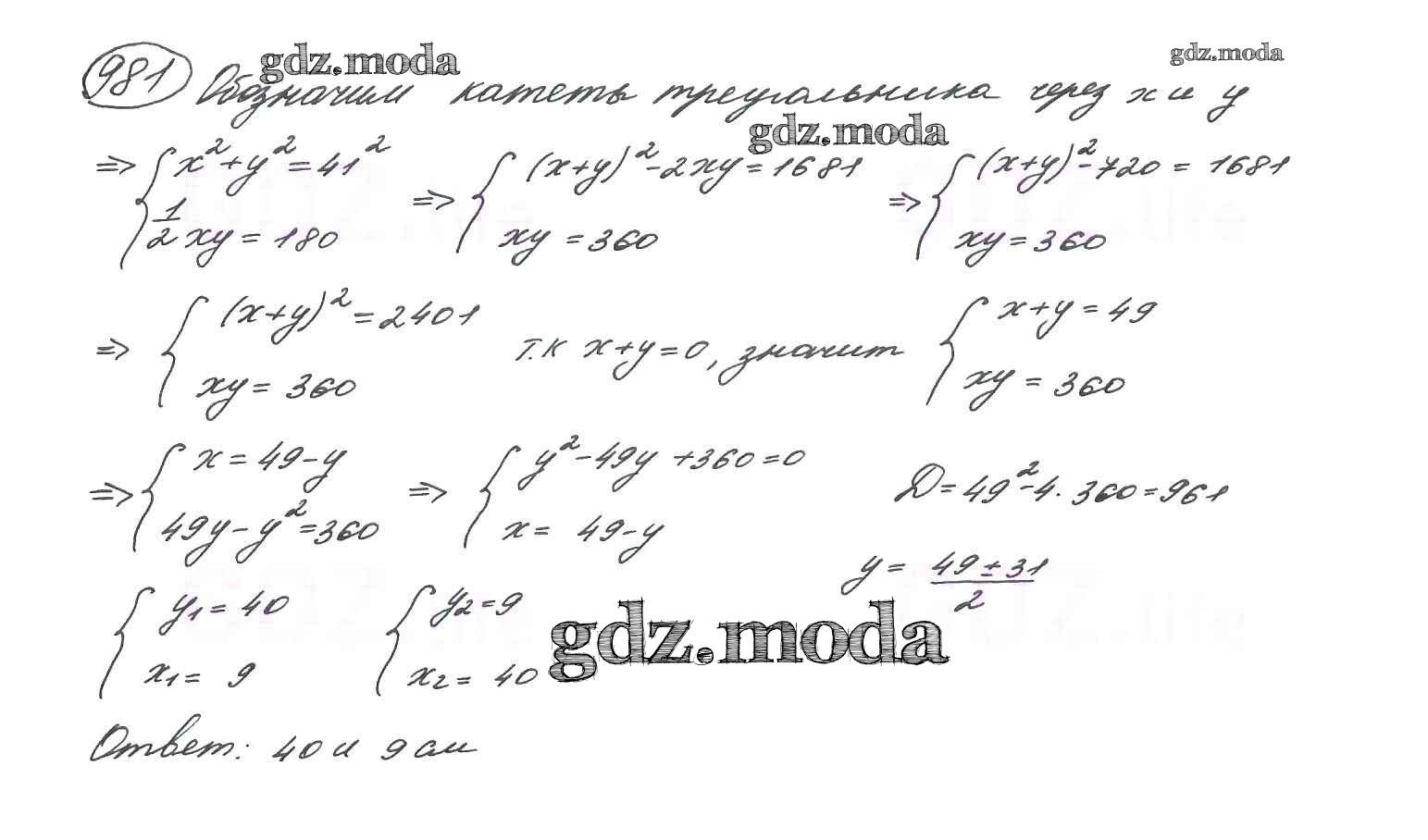 ОТВЕТ на задание № 981 Учебник по Алгебре 9 класс Макарычев