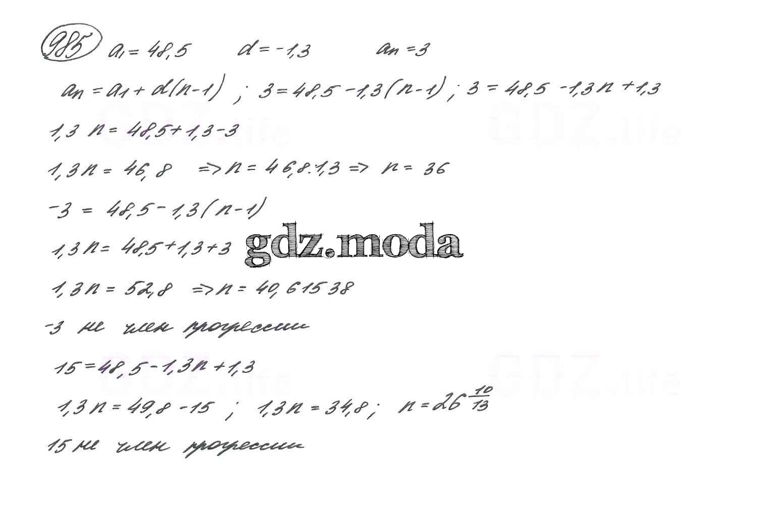 ГДЗ решение к заданию № 985 Алгебра 9 класс Макарычев Ю.Н. Просвещение 2014 ФГОС бесплатно на гдз.мода!