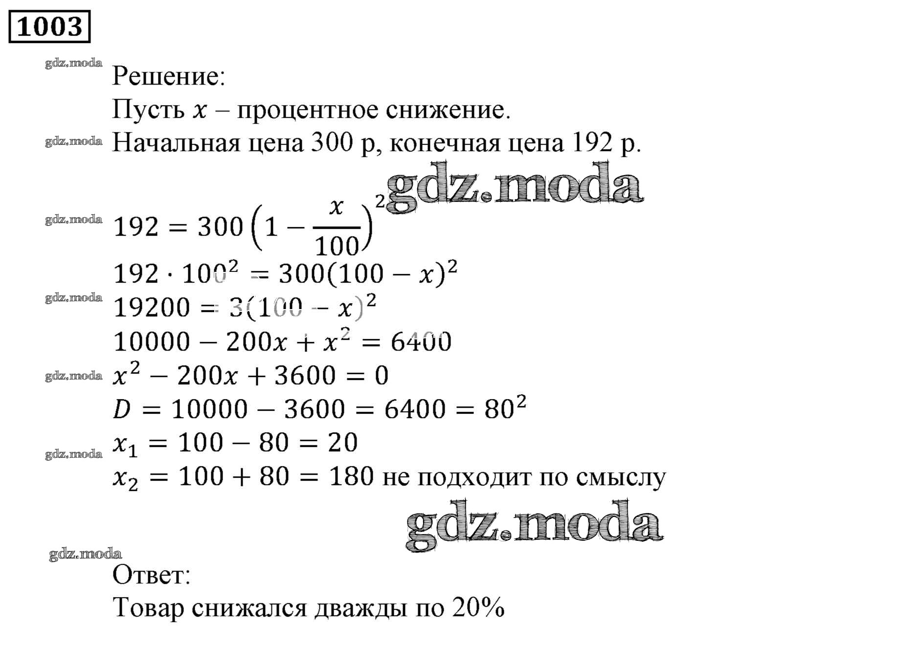 ОТВЕТ на задание № 1003 Учебник по Алгебре 9 класс Мерзляк Алгоритм успеха
