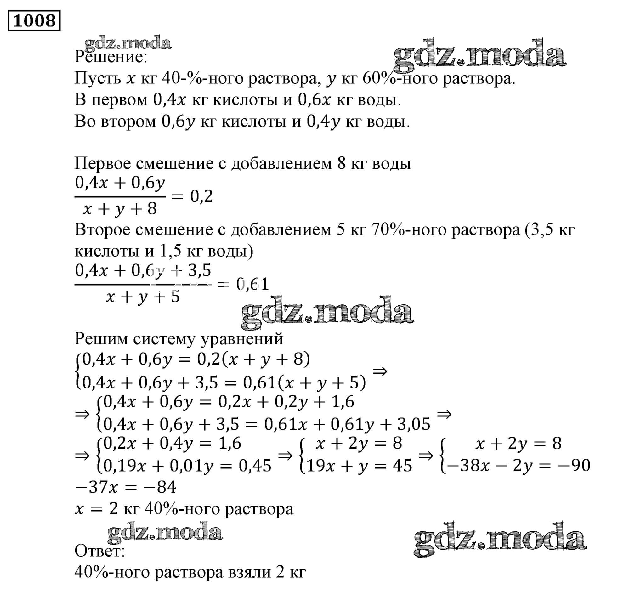 ОТВЕТ на задание № 1008 Учебник по Алгебре 9 класс Мерзляк Алгоритм успеха