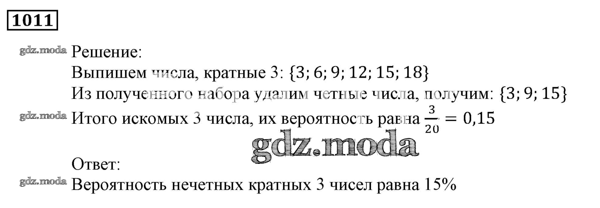 ОТВЕТ на задание № 1011 Учебник по Алгебре 9 класс Мерзляк Алгоритм успеха