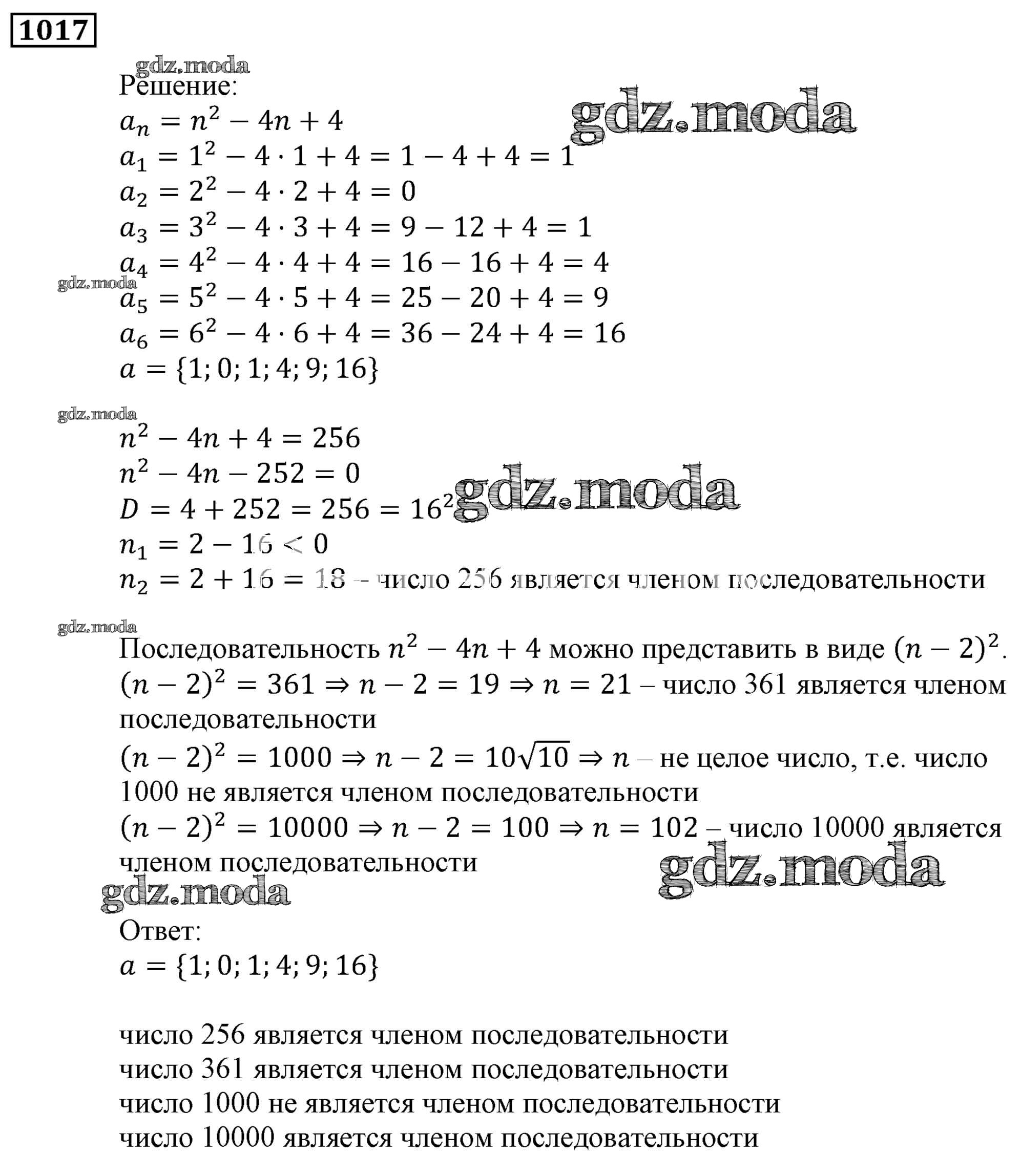 ОТВЕТ на задание № 1017 Учебник по Алгебре 9 класс Мерзляк Алгоритм успеха