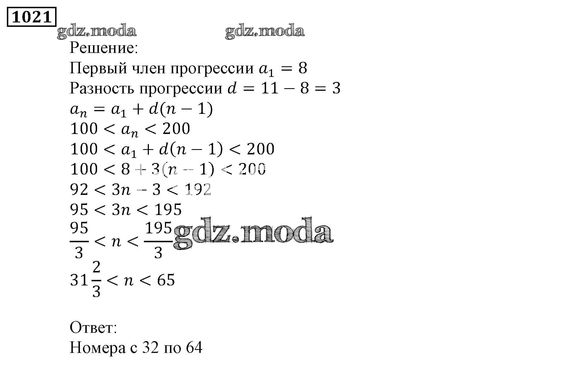 ОТВЕТ на задание № 1021 Учебник по Алгебре 9 класс Мерзляк Алгоритм успеха
