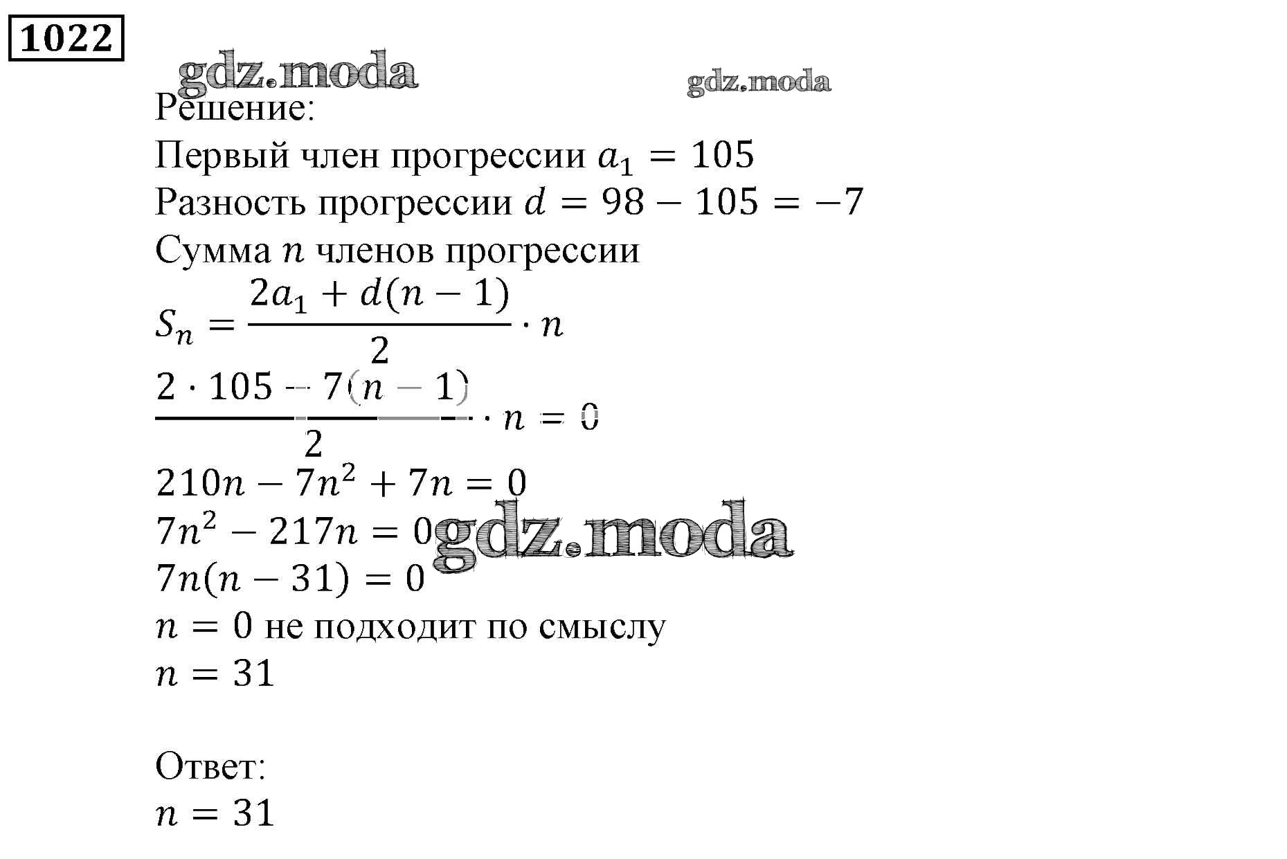 ОТВЕТ на задание № 1022 Учебник по Алгебре 9 класс Мерзляк Алгоритм успеха