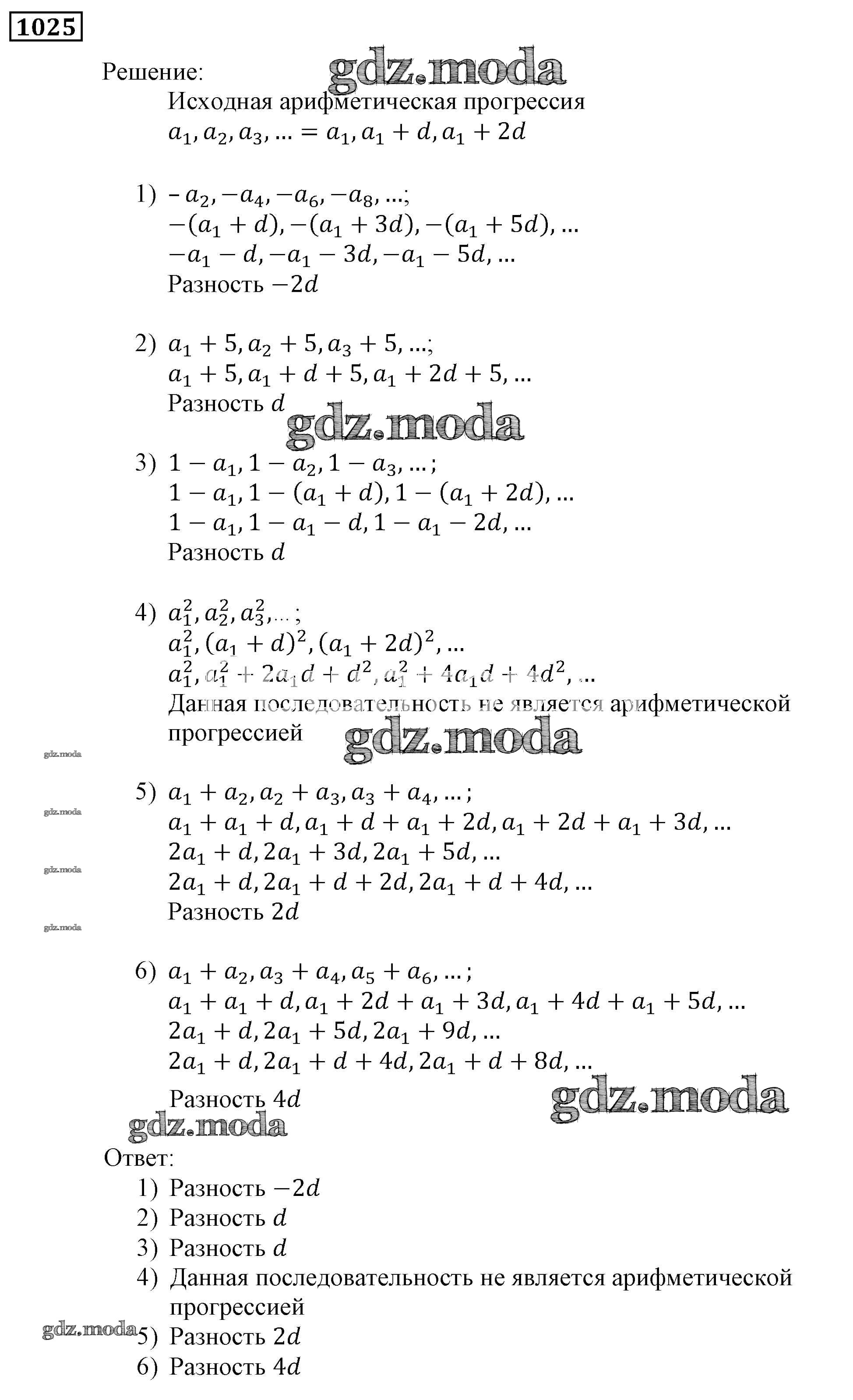 ОТВЕТ на задание № 1025 Учебник по Алгебре 9 класс Мерзляк Алгоритм успеха