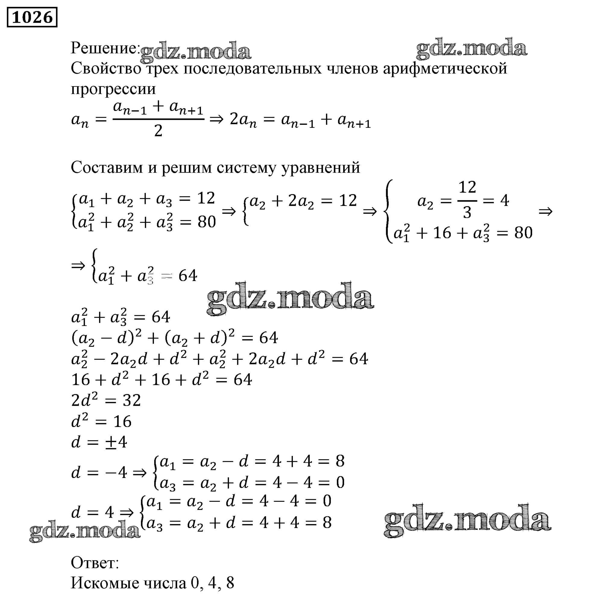 ОТВЕТ на задание № 1026 Учебник по Алгебре 9 класс Мерзляк Алгоритм успеха