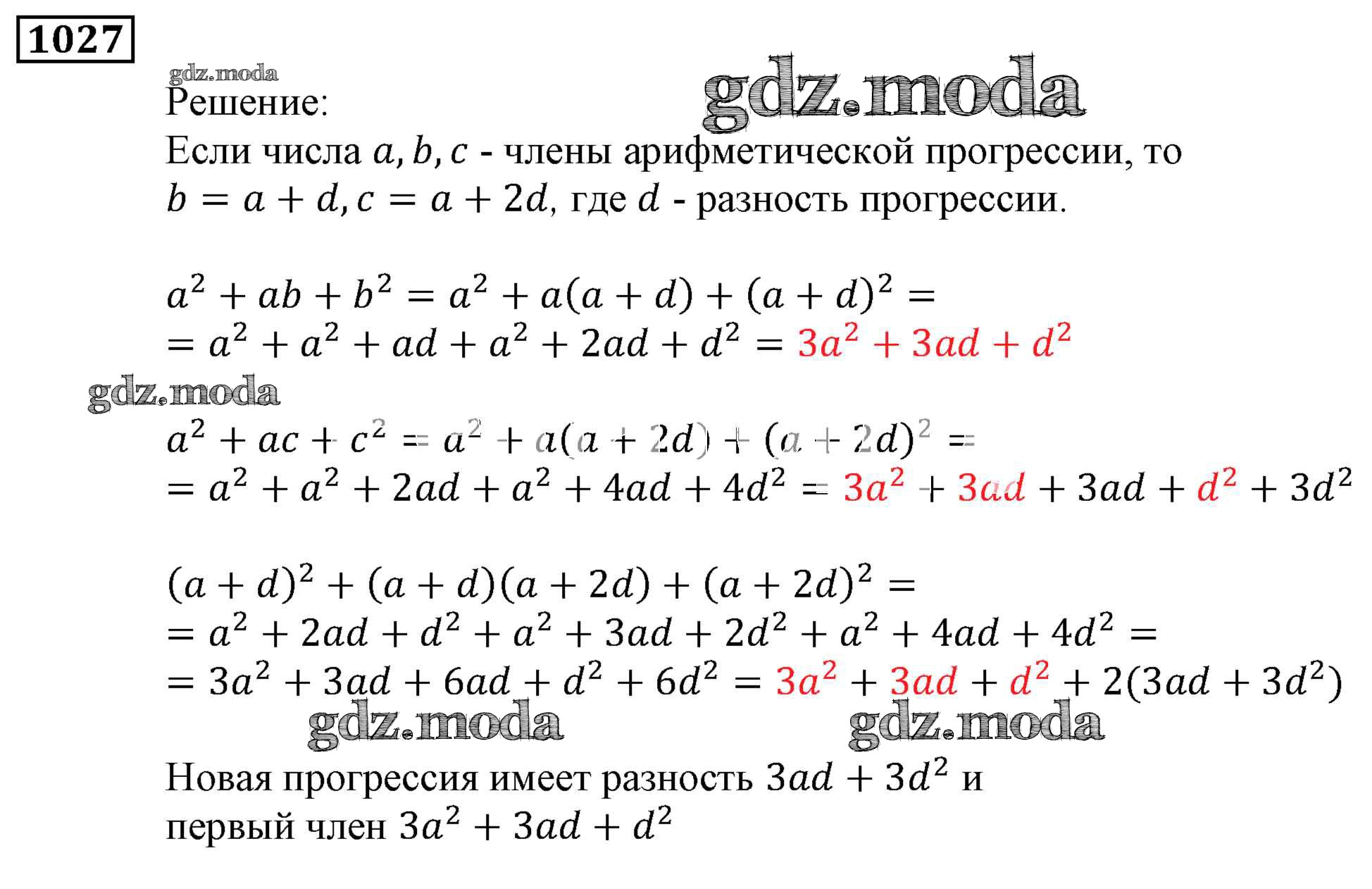 ОТВЕТ на задание № 1027 Учебник по Алгебре 9 класс Мерзляк Алгоритм успеха