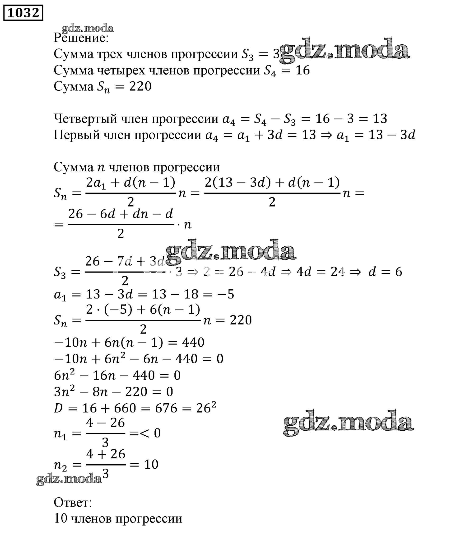 ОТВЕТ на задание № 1032 Учебник по Алгебре 9 класс Мерзляк Алгоритм успеха