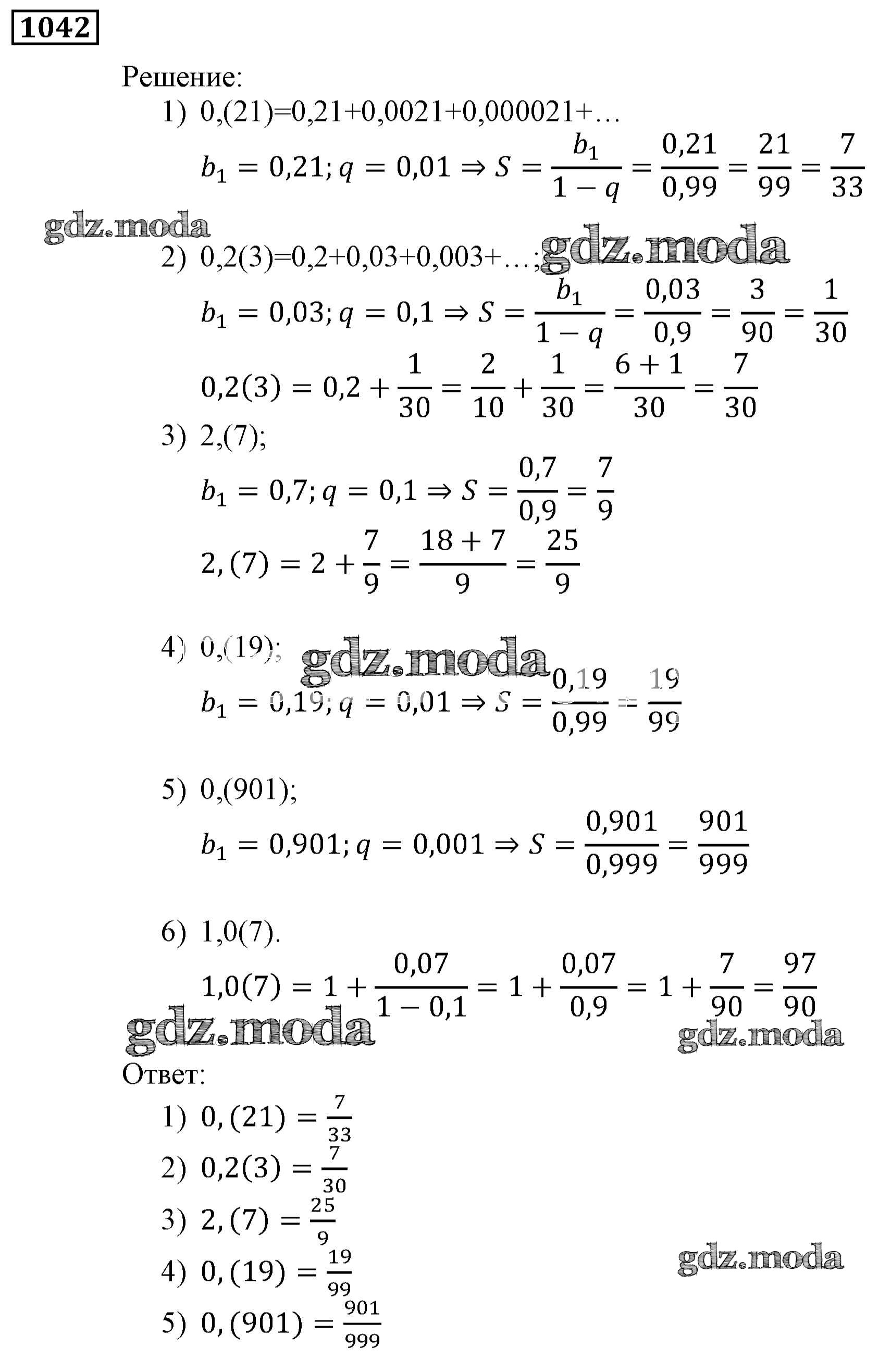 ОТВЕТ на задание № 1042 Учебник по Алгебре 9 класс Мерзляк Алгоритм успеха