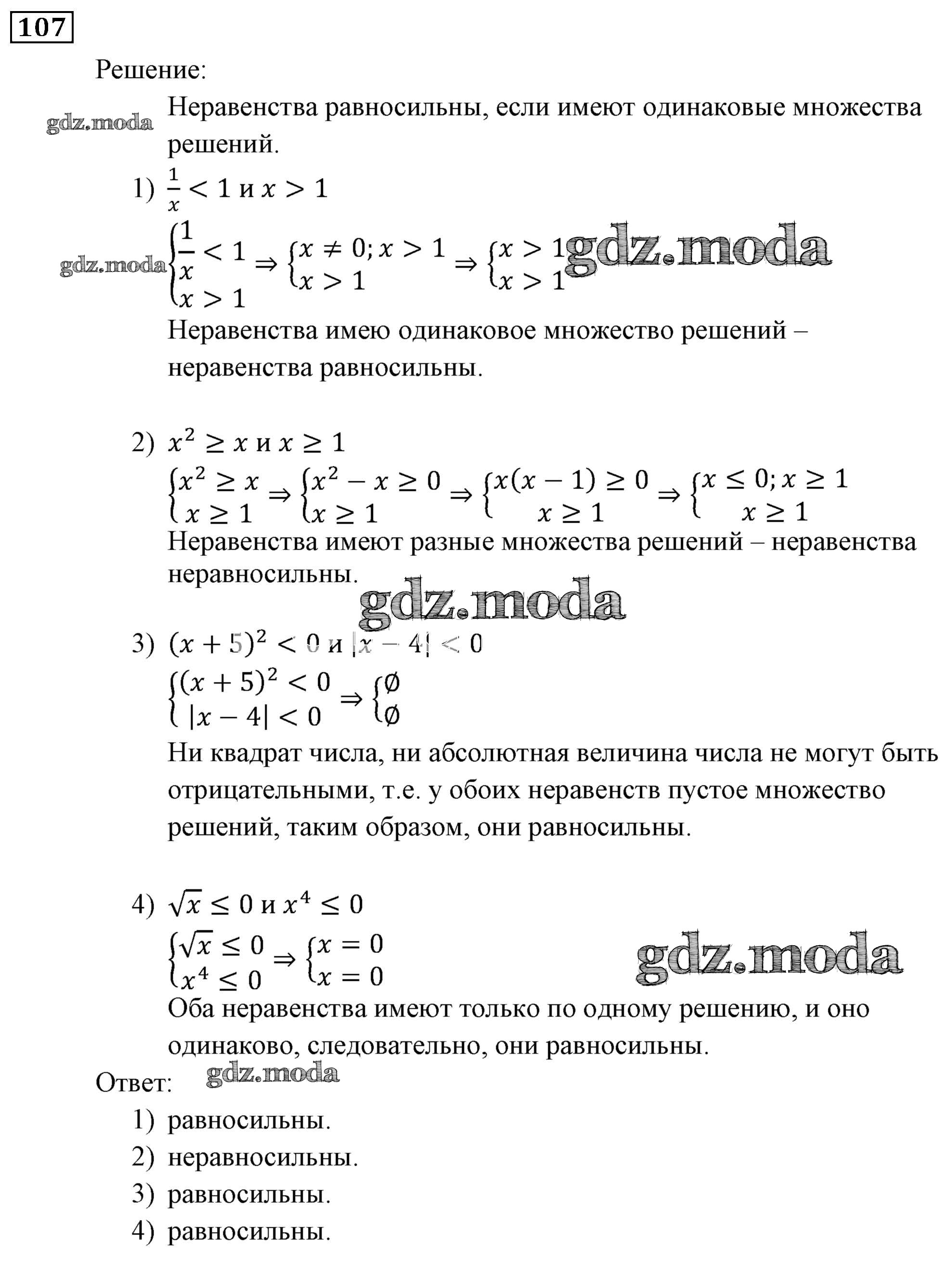 ОТВЕТ на задание № 107 Учебник по Алгебре 9 класс Мерзляк Алгоритм успеха