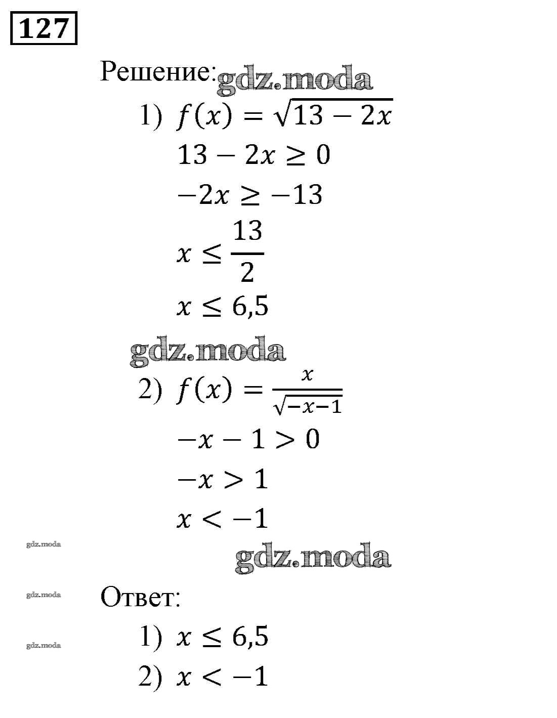 ОТВЕТ на задание № 127 Учебник по Алгебре 9 класс Мерзляк Алгоритм успеха