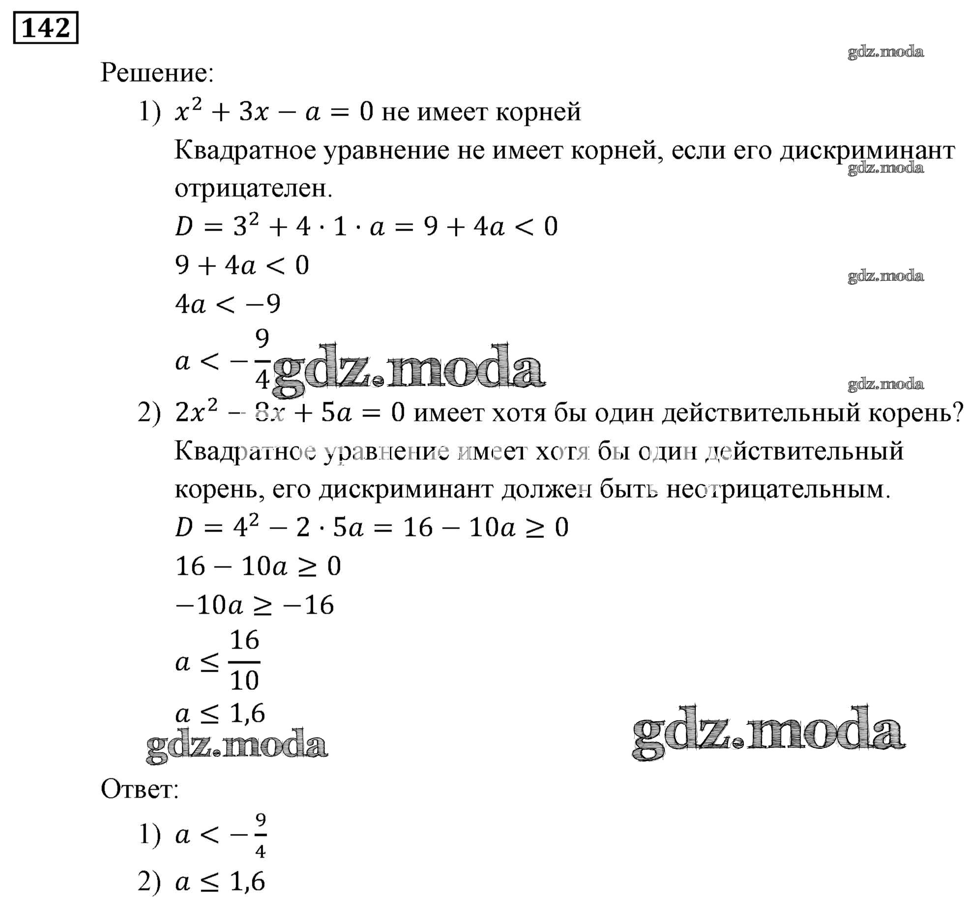 ОТВЕТ на задание № 142 Учебник по Алгебре 9 класс Мерзляк Алгоритм успеха