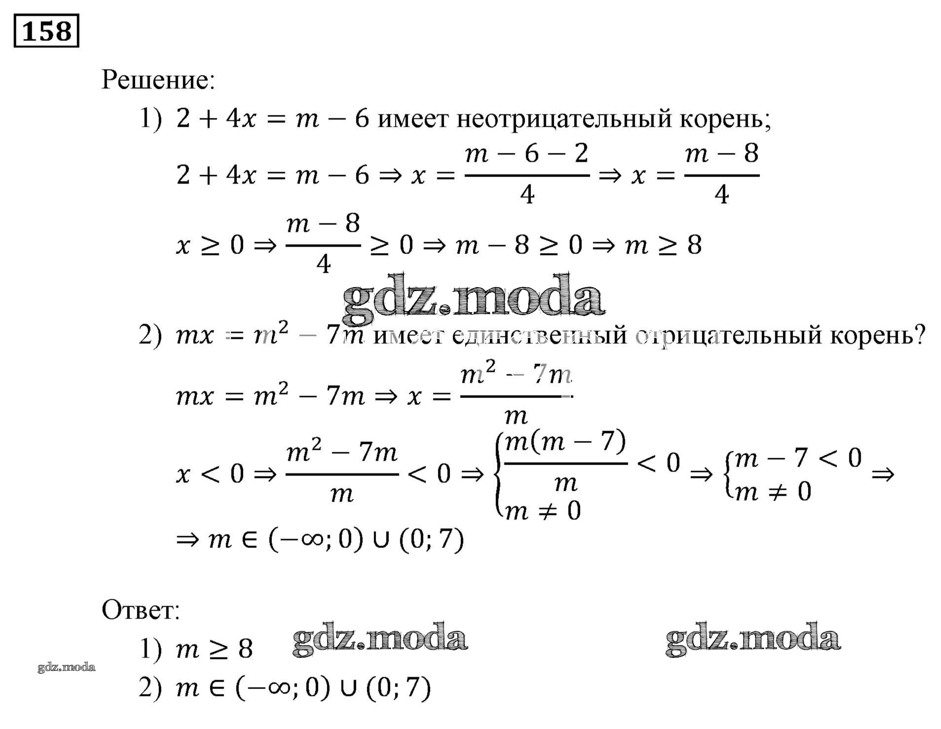 ОТВЕТ на задание № 158 Учебник по Алгебре 9 класс Мерзляк Алгоритм успеха