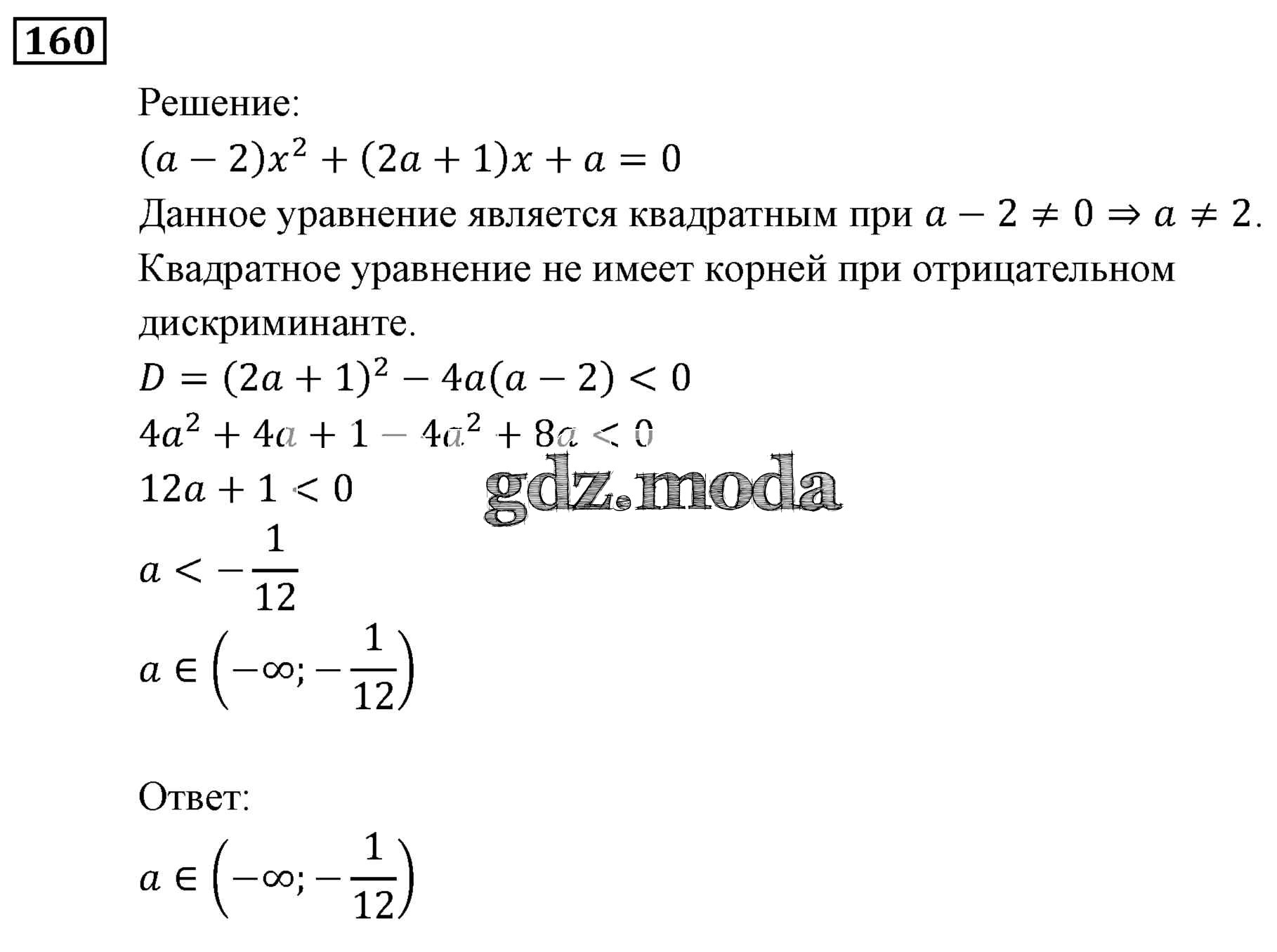 ОТВЕТ на задание № 160 Учебник по Алгебре 9 класс Мерзляк Алгоритм успеха